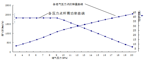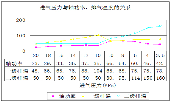 (4)能耗較大。選用電機功率較大(75kW或90kW),啟動電流也大。因此不能頻繁啟動。下圖是槽車壓力與軸功率和排氣溫度曲線。從圖線可以看出,槽車壓力在10MPa時,功率較大,其它壓力段的無功損耗較多,并且,為了保證電機在空負荷下啟動,在停機時要將氣缸及管線內的氣體放空。