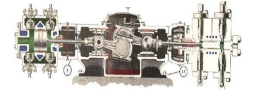 其傳動模式是:電機帶動曲軸旋轉,通過連桿、十字頭、活塞桿,帶動活塞在氣缸內作往復運動,實現氣體的壓縮過程,實現增壓目的。如下圖: