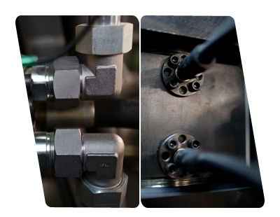 高壓油管接頭: 軟管使用萬向錐密封接頭 彎曲自然,隔振性好 距離傳感器: 精確位置換向,設備運行更穩定 排氣量有保障